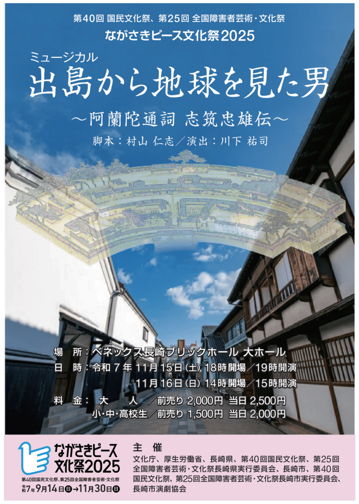 11/15.16(土・日)の2日間、長崎ブリックホールにて行われるミュージカル「出島から地球を見た男~阿蘭陀通詞 志筑忠雄伝~」に出演いたします!